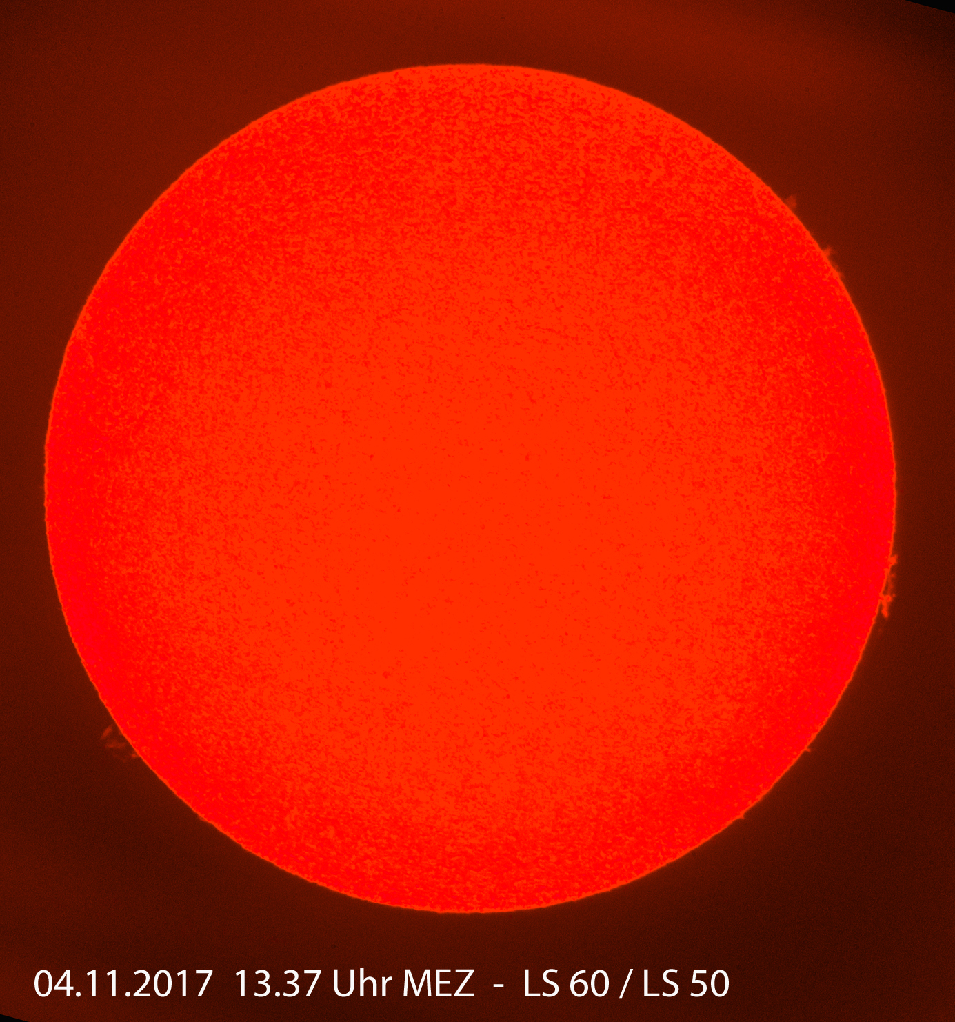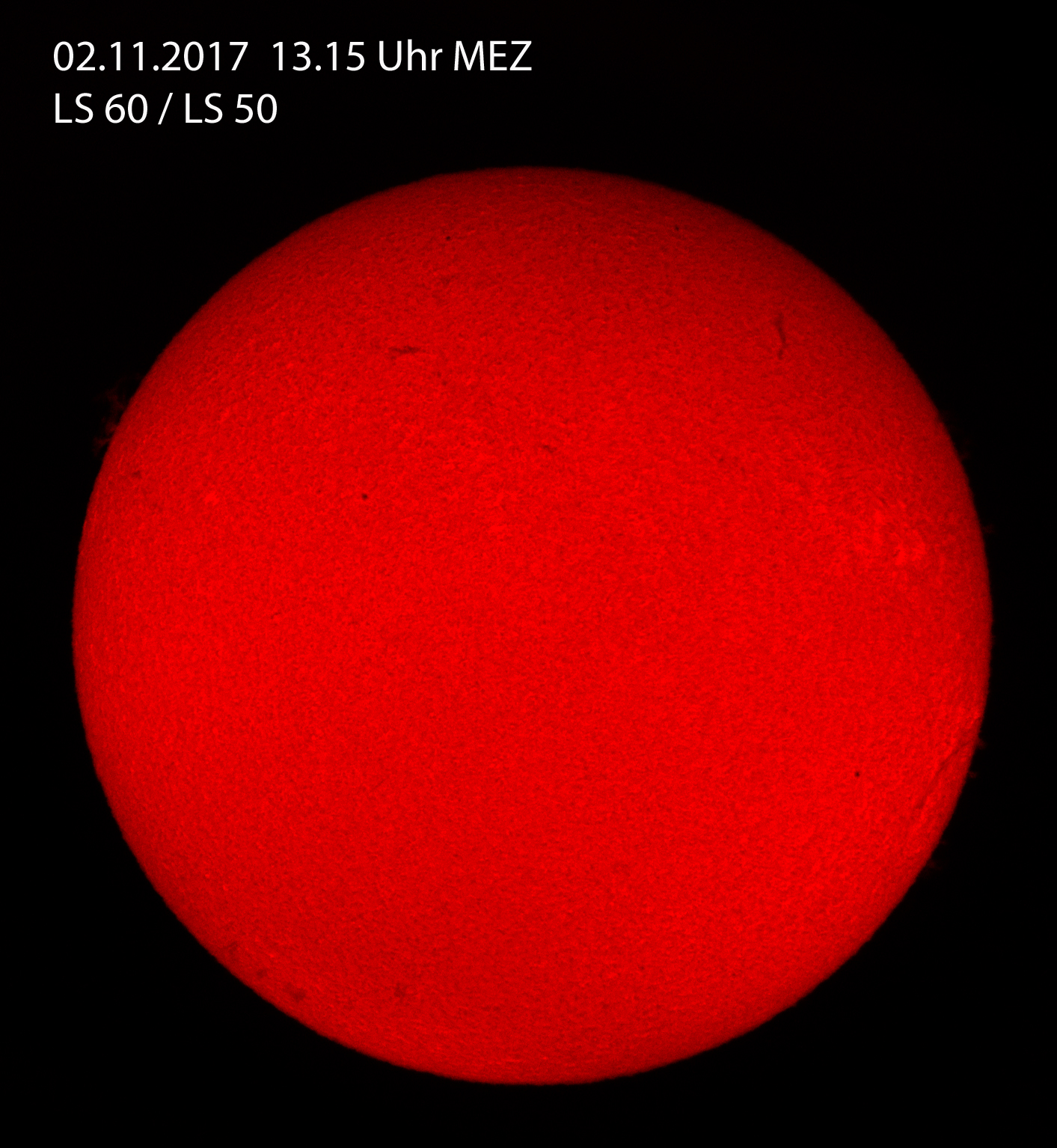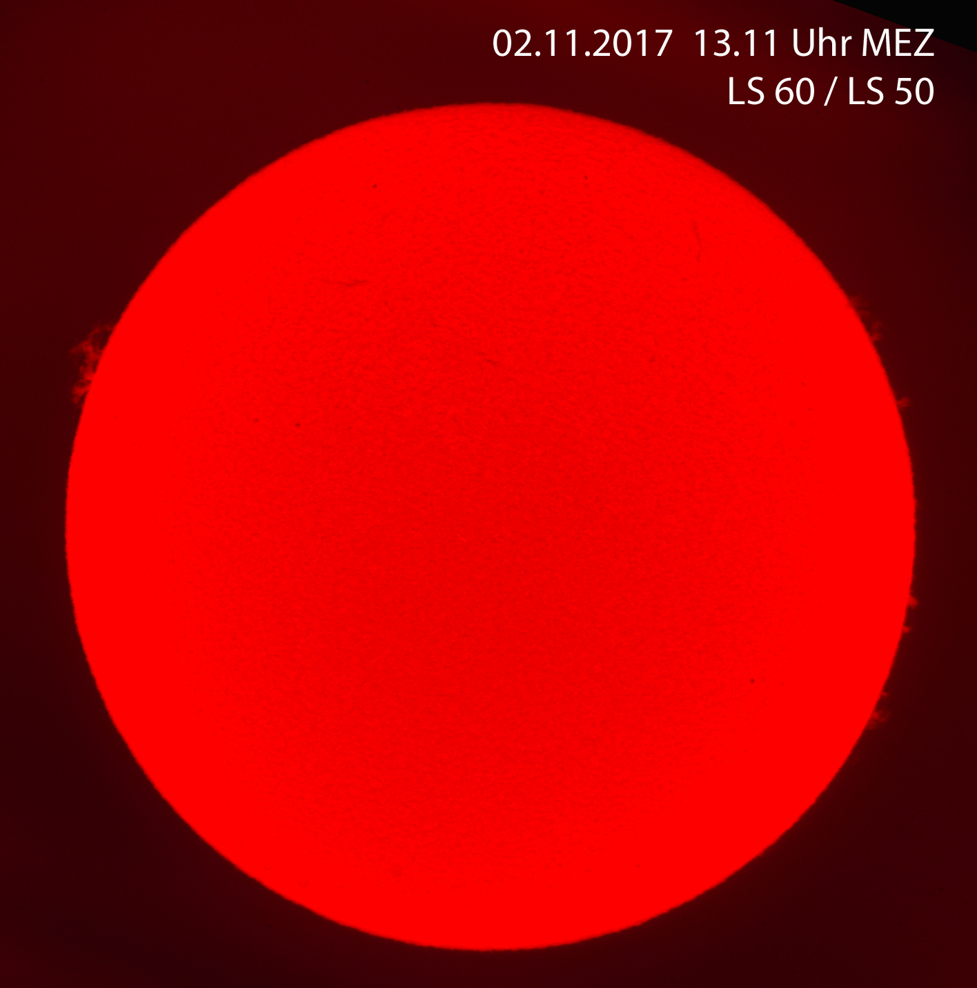 H-alpha Aufnahme vom 06.11.17 Protuberanzen vom 06.11.17 H-alpha vom 06.11.17