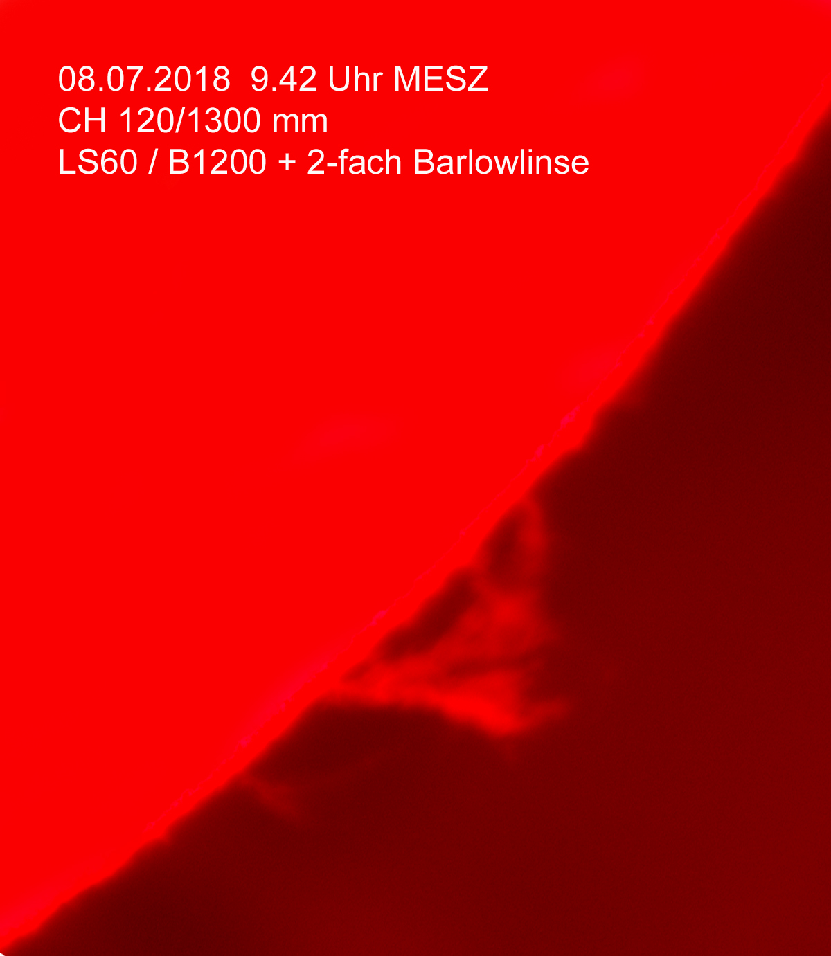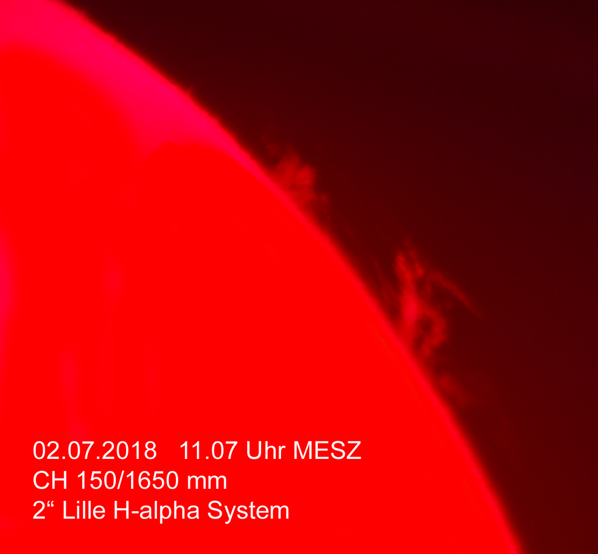 Leider gab es den ganzen Monat keine Sonnenflecken! Aber endlich am 24.07.18 mal wieder ein längeres Filament.